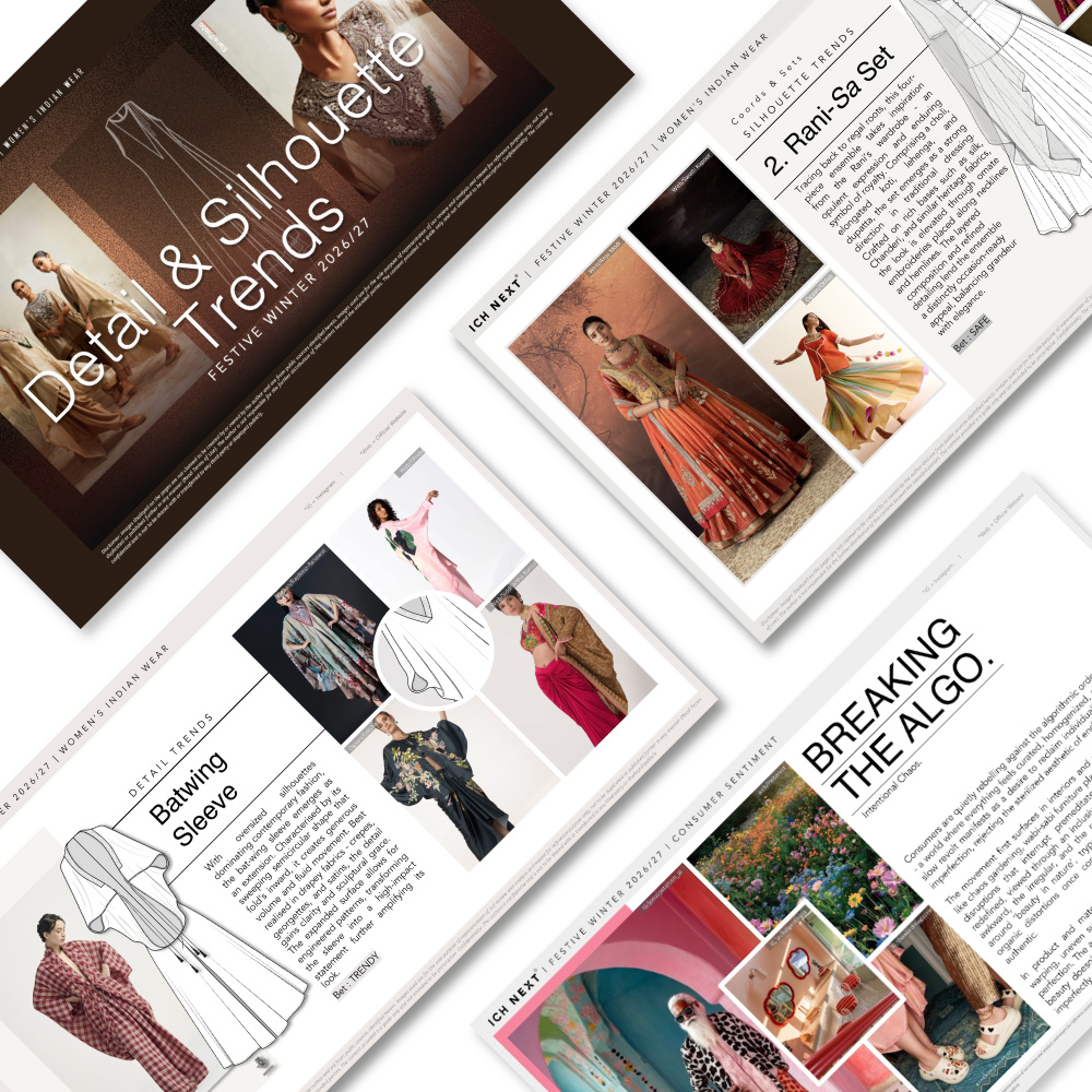 Unlock a world of fashion insights with our expertly crafted reports designed to inspire and inform. Each colour/ pattern/ silhouette/ capsule trend report is packed with everything you need to stay ahead. Each of these reports speak to macro trends that have a long-term impact on the consumer. We provide in-depth analysis and direction, helping you incorporate these designs seamlessly into your creations.